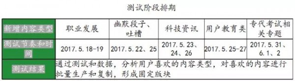 (圖2 :內(nèi)容測(cè)試排期簡(jiǎn)表)
