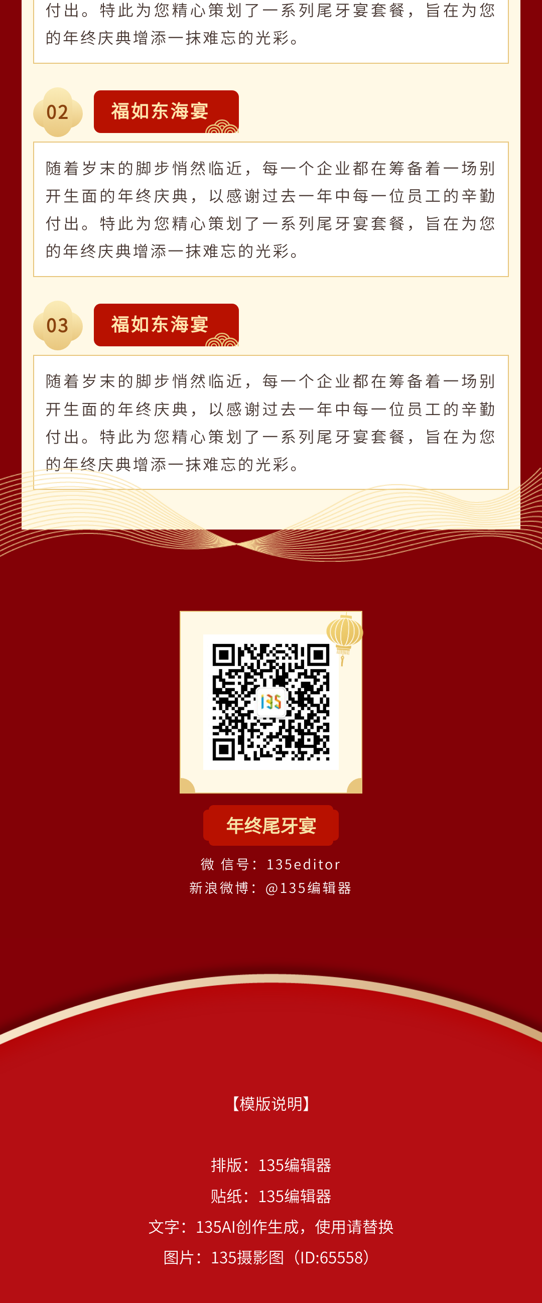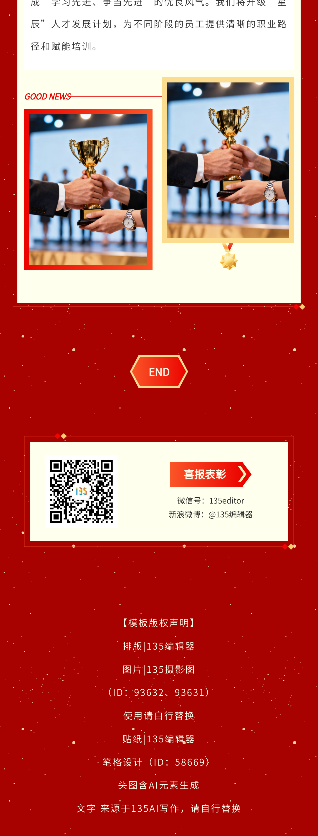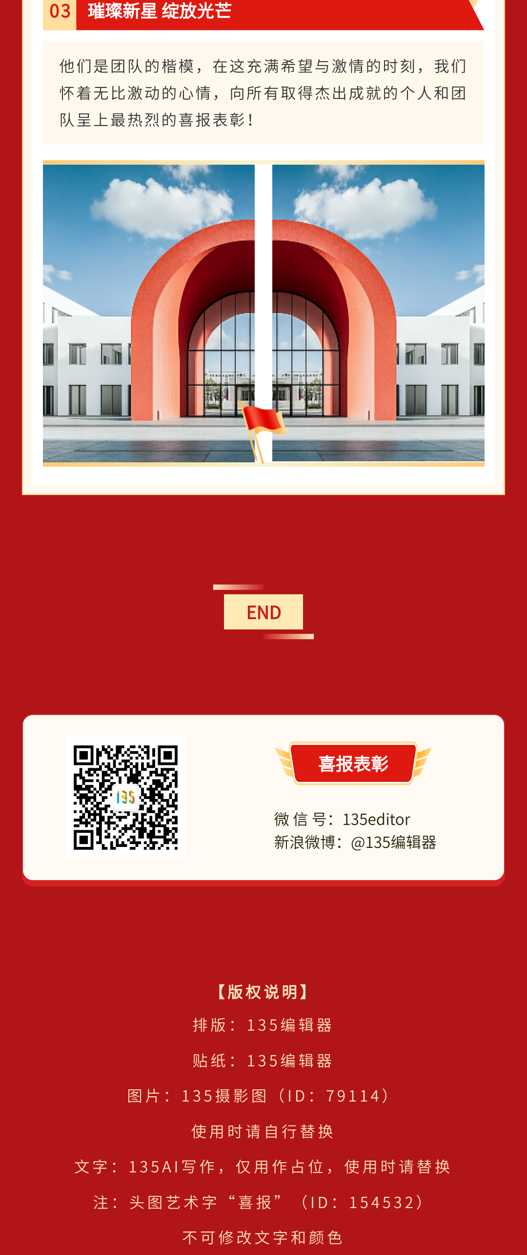 精選超10套年終活動公眾號模板,涵蓋喜報(135編輯器模板ID:166454)、表彰大會、年終盛典等具體場景案例,附使用教程,助力高效宣傳。135編輯器搜索模板ID獲取。