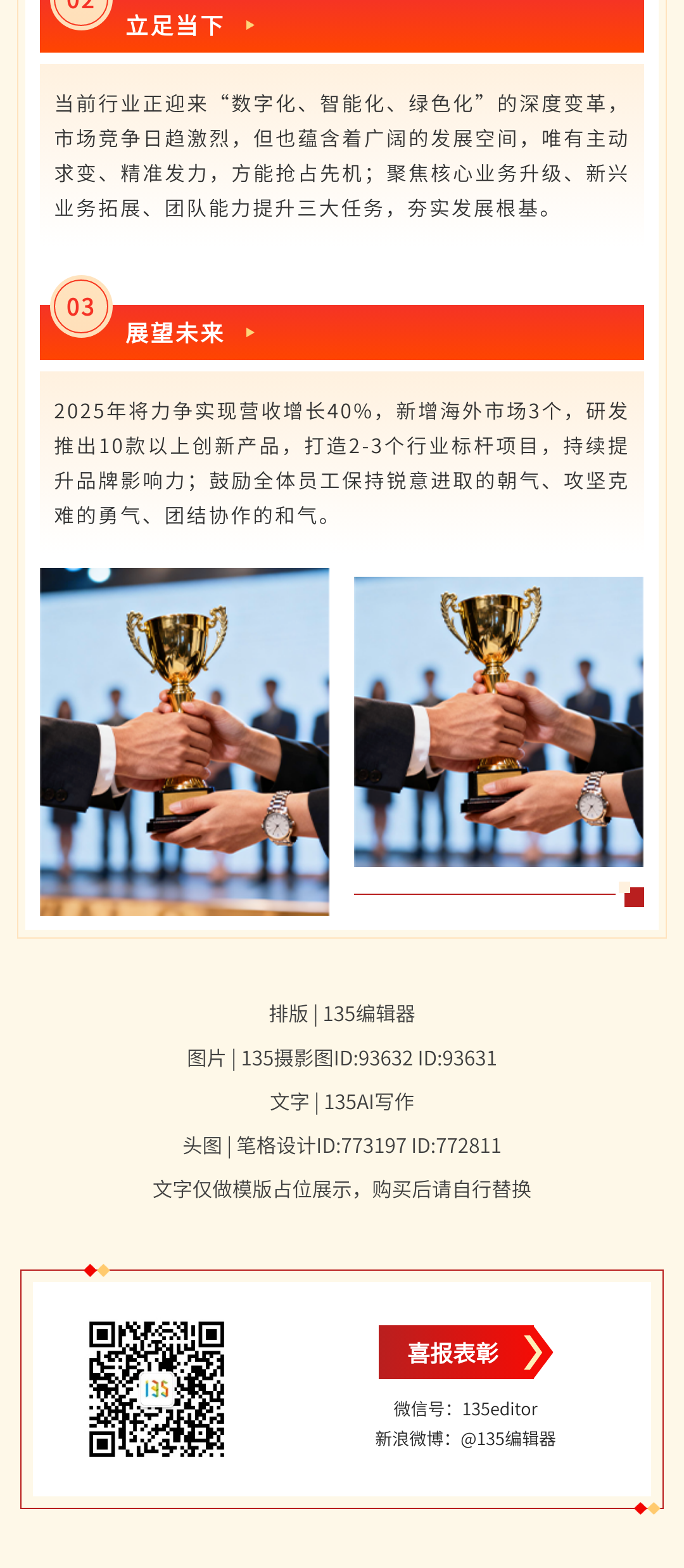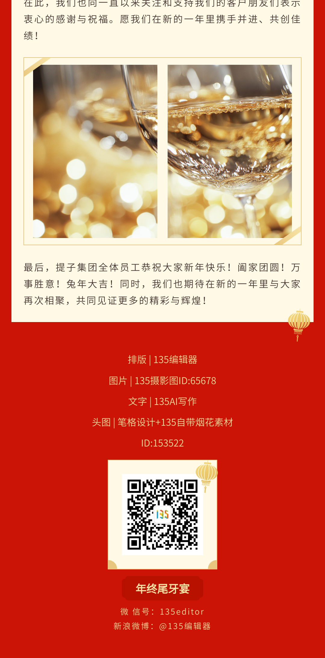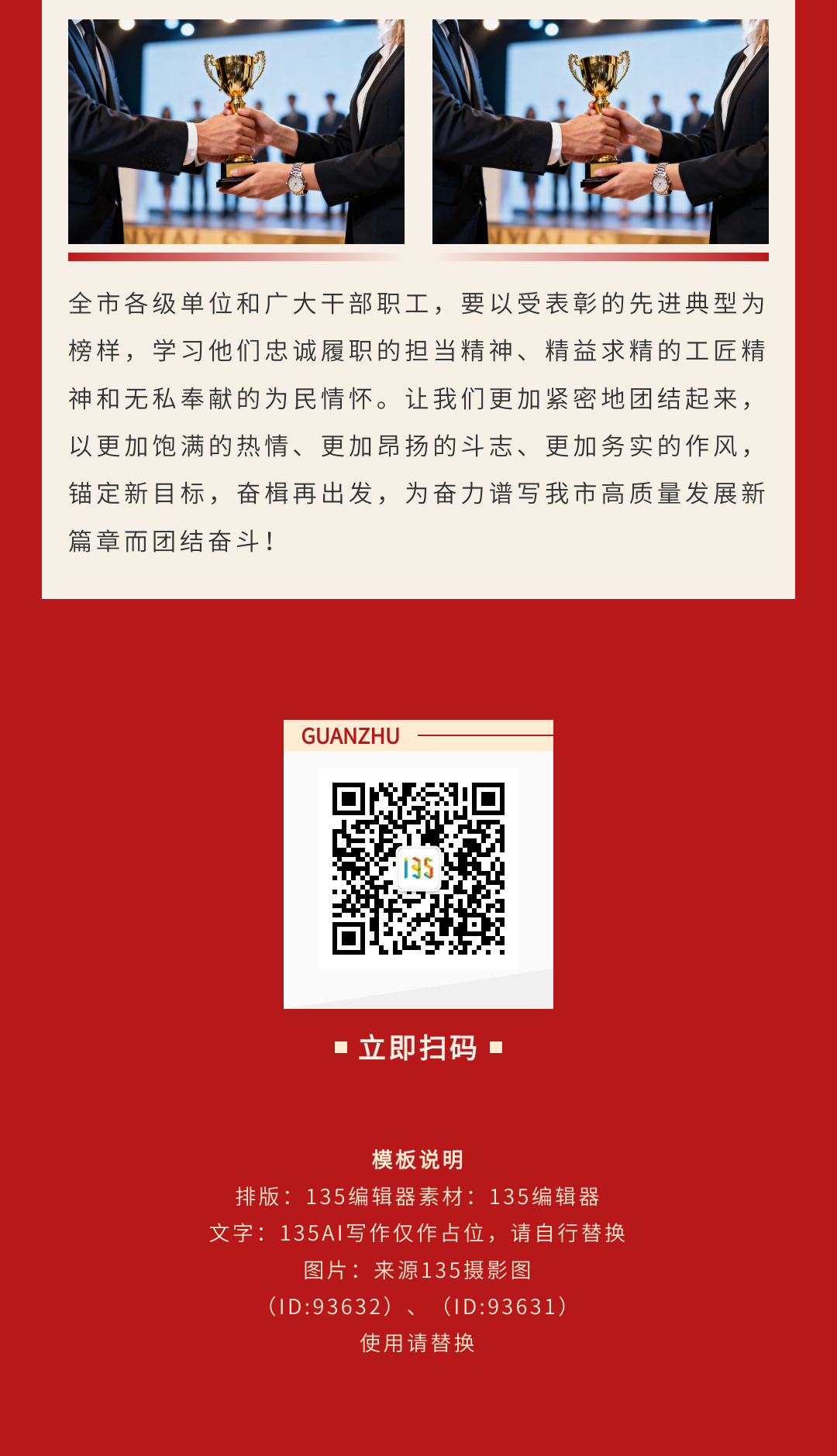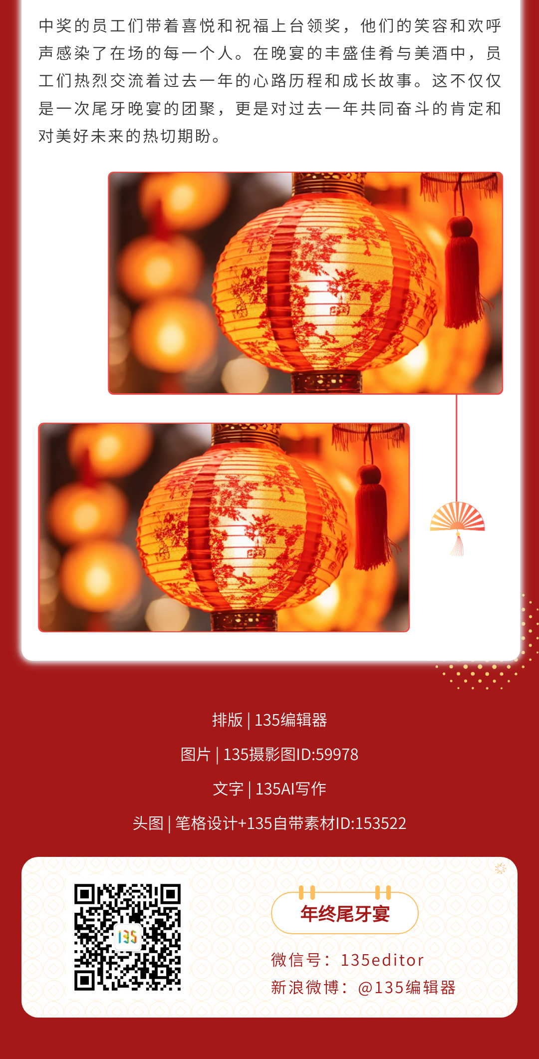 精選超10套年終活動公眾號模板,涵蓋喜報(135編輯器模板ID:166454)、表彰大會、年終盛典等具體場景案例,附使用教程,助力高效宣傳。135編輯器搜索模板ID獲取。