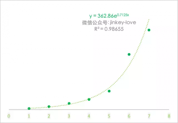 例子:QQ 會(huì)員的成長(zhǎng)體系,對(duì)其總經(jīng)驗(yàn)值進(jìn)行回歸后得到下圖的公式。