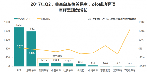 這一步我想才是ofo最終的目的,眾所周知數(shù)據(jù)的價值會越來越大,目前共享單車的MAU大約在3264萬,ofo的MAU在1758萬。