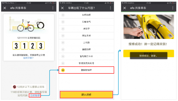 之前由于ofo的產(chǎn)品存在著這個致命的bug,可以提前結(jié)束用車,或者通過對車輛報修,不花錢使用車輛。