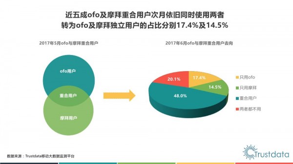 由于使用共享單車這類群體有一個比例,近一半的用戶,既會使用ofo又會使用Mobike。