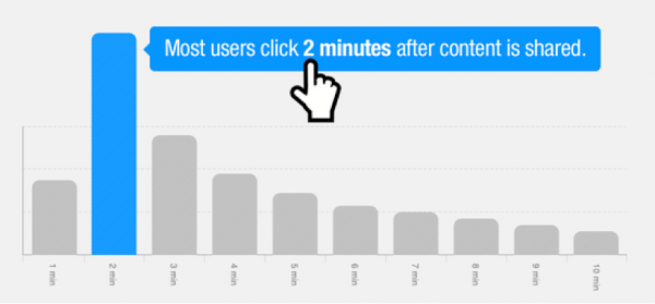 一條分享75%的反饋發(fā)生在分享后的一天內(nèi),其中反饋的高峰是分享2分鐘后