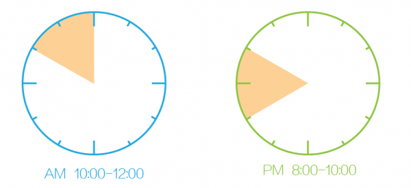 一天中兩個最熱門的分享時段:早上10-12點 晚上8-10點