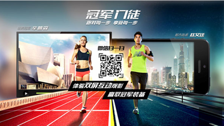 世界冠軍Jenny Simpson和New Balance慢跑推廣大使趙又廷,共拍”冠軍門徒”雙屏互動視頻。粉絲可邀請好友掃描二維碼,兩部手機同步分別播放冠軍版和門徒版,拼在一起即可觀看完整故事,在播放過程中搖一搖手機,還可實現(xiàn)雙屏互換。