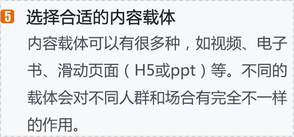 內(nèi)容的載體可以有很多種,如視頻、電子書(shū)、信息圖、檔案、報(bào)告、滑動(dòng)頁(yè)面(H5或ppt)、案例研究、博客等。不同的載體會(huì)對(duì)不同人群和場(chǎng)合有完全不一樣的作用,以下將簡(jiǎn)單對(duì)幾種載體做剖析。