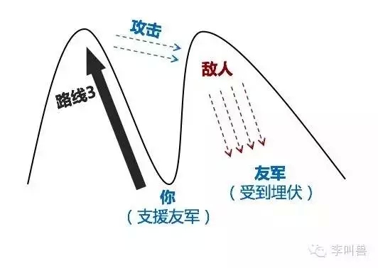 通過往旁邊的山峰進軍,雖然他們距離友軍反而更遠了,表面上違背了“支援友軍”的目標。但是卻改變了局勢,讓自己可以占據(jù)有利位置攻擊敵人,從而徹底解決友軍的埋伏問題。