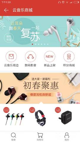 云音樂商城,有云音樂周邊、數(shù)碼影像、新品上架、積分商城。云音樂的金融體系圍繞音樂,所賣商品主要與音樂相關(guān),且強調(diào)商品品質(zhì)。