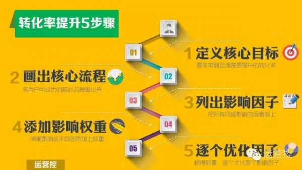 本文將從5大方面為你一一敘述提升微信公眾號轉(zhuǎn)化率的過程,這其中包含了定義核心目標(biāo),畫出核心流程,列出影響影子,添加影響權(quán)重,逐個優(yōu)化因子。相信你讀完本文以后,一定會豁然開朗。
