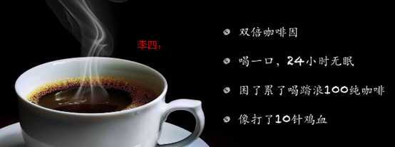 李四:我為了敲代碼經(jīng)常熬夜,我最關(guān)心提神效果,老板來(lái)一杯咖啡因,不加水。