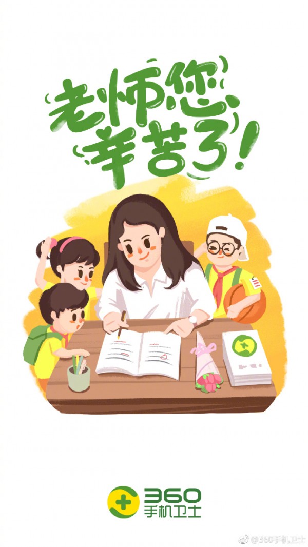 360手機(jī)衛(wèi)士的教師節(jié)借勢(shì)海報(bào),就是采用了這種滾圓滾圓的字體創(chuàng)意,除了讓字體變圓之外,還在某些字的旁邊加了小弧線,把點(diǎn)變成心形,同時(shí),綠色的色彩搭配,使之更加的充滿童趣。因?yàn)椋瑥恼麄€(gè)畫面我們可以看出,這句“老師您辛苦了!”是出自小朋友之口,無(wú)疑加深了它的可愛程度。