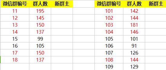 下圖為每天睡覺前更新一版的群人數(shù)統(tǒng)計表格部分,區(qū)分各群等級,把握人數(shù)變化情況。
