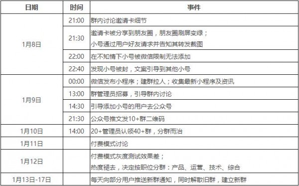 1月9日0點微信正式開放小程序,借著這波風(fēng)口策劃了一場小程序社群拉新的傳播活動,雖然用0成本的方式達(dá)到了整個社群覆蓋近1萬人的結(jié)果,但這次活動中遇到的12個坑卻影響其成為一次百萬級傳播的活動。