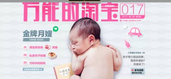 更深層次的活動(dòng)主題要是可以到目標(biāo)吸引用戶來(lái)參與活動(dòng),比如下面這個(gè)《萬(wàn)能的淘寶-金牌月嫂》主題才是我們最需要的,它有非常強(qiáng)的人群屬性,同時(shí)洞察到了目標(biāo)用戶真正的需求。