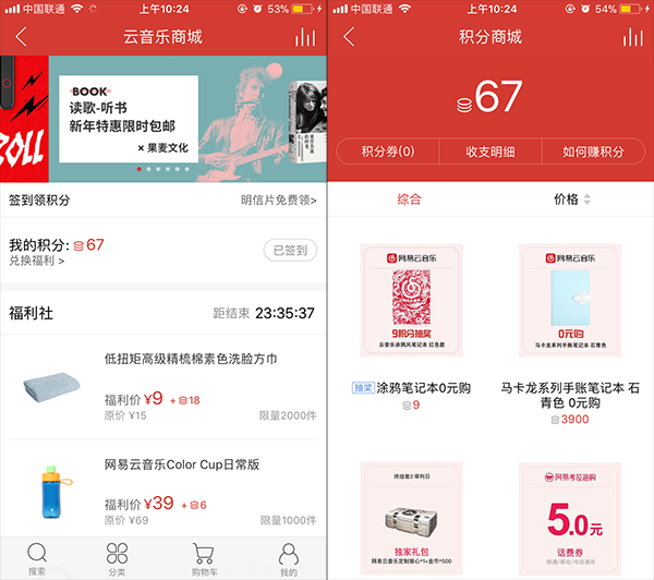 在網(wǎng)易云音樂內(nèi)完成簽到,即可領(lǐng)取積分,這些積分與網(wǎng)易云音樂的功能無關(guān),但是可以在積分商城兌換物品。積分商城所提供的商品多為網(wǎng)易云音樂這一品牌的定制款,用戶為了獲得這些定制商品,會完成簽到行為。