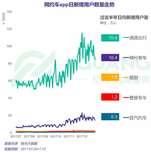 截至12月,網(wǎng)約車app市場(chǎng)滲透率14.0%,滴滴出行處于行業(yè)絕對(duì)領(lǐng)先的地位,市場(chǎng)滲透率高達(dá)12%,過(guò)去半年每天有超過(guò)1300萬(wàn)人使用滴滴出行,且仍在上升的趨勢(shì),普及程度最高,市場(chǎng)相對(duì)成熟。隨著在一線城市的深度滲透,滴滴在一線城市的人口增長(zhǎng)紅利已逐漸消失,新一線城市成為滴滴最大的新用戶增長(zhǎng)點(diǎn),為Q4貢獻(xiàn)了超過(guò)1/4的新用戶。因此一線城市由于市場(chǎng)最大,需要以活動(dòng)促活來(lái)帶動(dòng)影響力,新一線城市則通過(guò)活動(dòng)進(jìn)一步挖掘市場(chǎng)。
