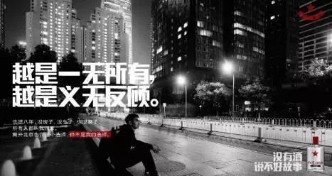 比如紅星二鍋頭的”越是一無所有,越是義無反顧“。說出了很多漂泊游子的心里話。
