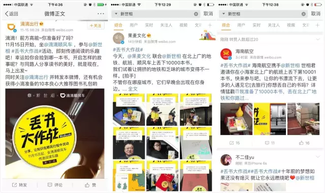 自今年7月發(fā)布“逃離北上廣”后,此次“丟書大作戰(zhàn)”算是新世相發(fā)起的第二次線下活動?!疤与x北上廣”的成功為新世相此后的活動策劃上帶來了巨大的勢能,一方面是整合資源的優(yōu)勢,另一方面是粉絲的支持。
