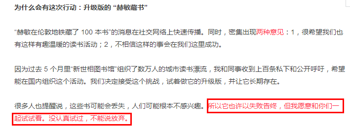 其二就是在中國這樣人口眾多的國家,每天地鐵里人滿為患,又怎么能夠去好好地看書,總覺得丟書大作戰(zhàn)這種形式有種不合時宜的感覺。