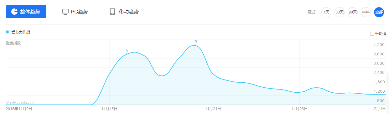 從百度指數(shù)看,丟書大作戰(zhàn)的搜索熱度在一周后迅速下跌