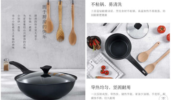 那么,在上圖中顯示的一口以“導(dǎo)熱均勻”和“不粘”作為賣(mài)點(diǎn)的鍋,需要有大量的、各種角度去描述它的導(dǎo)熱均勻和不粘,而這類以各種形容、各種場(chǎng)景去切這兩個(gè)賣(mài)點(diǎn)并生成的文案,并不能具備標(biāo)語(yǔ)性文案的功能,但是足以勝任孜孜不倦的向用戶說(shuō)明產(chǎn)品這個(gè)任務(wù)。