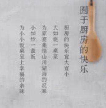 我相信大部分用戶并不會(huì)去試圖理解這個(gè)“囿于”的意思,人類受過(guò)訓(xùn)練的閱讀理解習(xí)慣,是可以做到跳過(guò)不熟悉,局部理解熟悉部分的。所以大概大部分人對(duì)這句話不會(huì)仔細(xì)觀看,只會(huì)有一個(gè)直觀印象,覺(jué)得它是在表達(dá)“廚房里的快樂(lè)”。