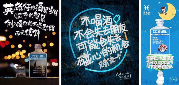 江小白文案成功的關(guān)鍵:在于它花費(fèi)了大量的資金和精力在投放上,先讓你在茫茫人海中看到它;然后,抓住了會(huì)喝酒的年輕用戶的情緒,用年輕人喝酒時(shí)對(duì)同事、兄弟、客戶會(huì)說(shuō)的走心的話,來(lái)挑動(dòng)用戶情感,勾起用戶回憶,抓住用戶心智。