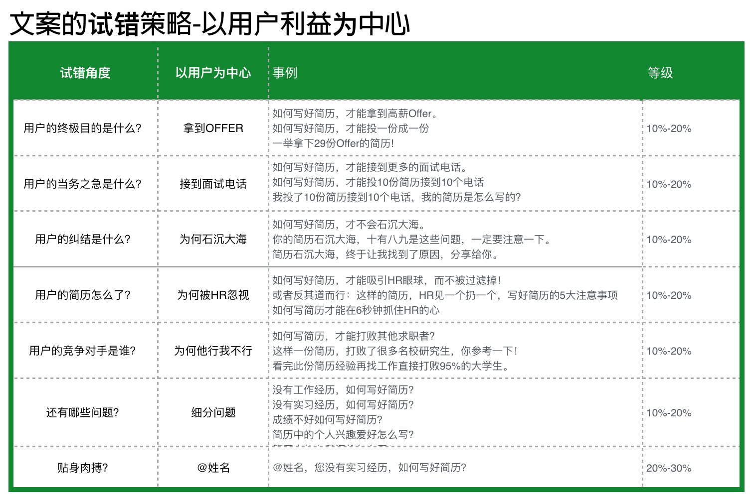 “韓利,你這個試錯文案角度有問題,你不要以自我為中心,從用戶角度想想:用戶為啥要看你的文章,看你的文章他要解決什么問題!