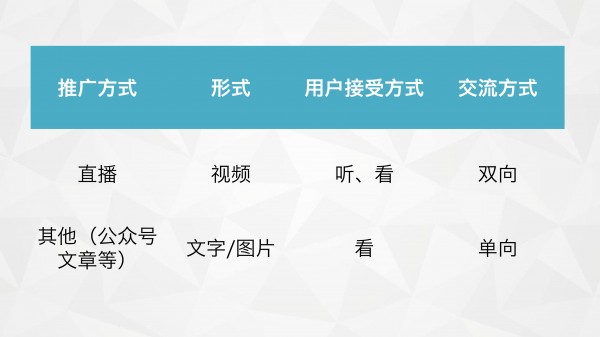 下圖就直播和其他推廣方式做了對比: