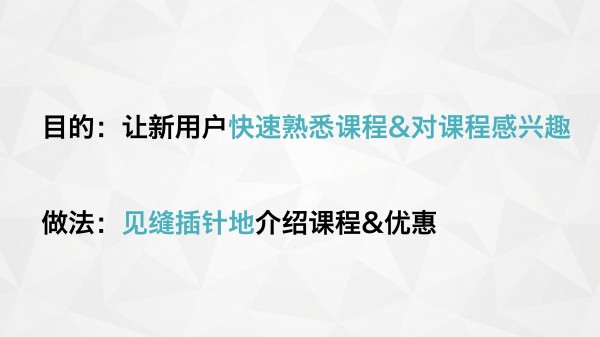 稍微研究過消費者心理就知道,不管購買什么,用戶在做購買決策時,一定會遵循“了知-感興趣-購買”這一流程。我們要把聽直播的用戶,想成對課程一無所知的小白,而我們要做的,就是讓他們快速知道課程,并產(chǎn)生興趣。