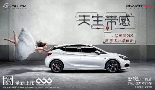 威朗的定位,比英朗略高,產(chǎn)品風(fēng)格偏向運(yùn)動(dòng),產(chǎn)品賣點(diǎn)為時(shí)尚動(dòng)感和精準(zhǔn)操控。目標(biāo)人群也是年輕人,但更多滿足的是個(gè)人享受,而不是全家需求。所以威朗和威朗GS的文案,一個(gè)是天生愛跑,一個(gè)是天生帶感。