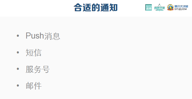 人都是比較健忘的,如果不提醒的話,很多APP很容易忘掉,提醒本身就在提高活躍。比如獲取消息、短信、服務(wù)號、郵件。郵件方式比較傳統(tǒng),但有時候很有效。