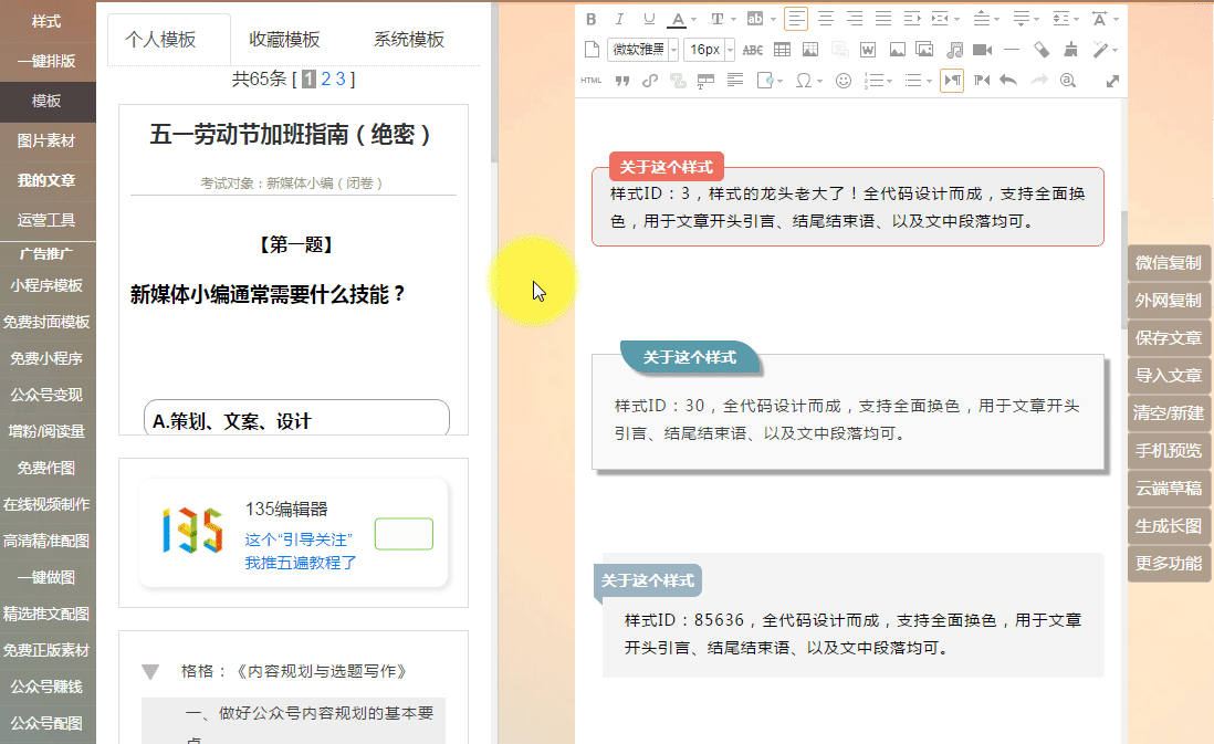 135編輯器全網(wǎng)樣式最多相信已經(jīng)是眾所周知了!某些編輯器、插件求你別再抄了!這里我就不點(diǎn)名了,希望你好自為之吧!