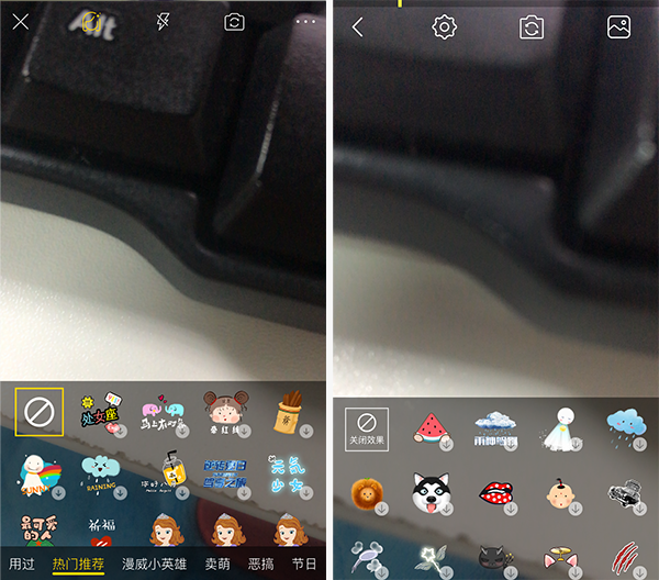 點擊錄制視頻,秒拍APP為用戶提供了大量的貼紙,滿足用戶多種場景下的需求,而隨手拍APP的貼紙數(shù)量較少。