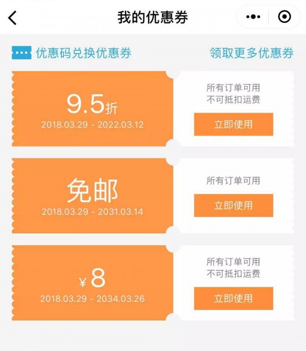 優(yōu)惠券功能的設(shè)計(jì)就是便于商家不用花費(fèi)大量的內(nèi)容來說明優(yōu)惠活動(dòng),一張優(yōu)惠券就可以表達(dá)所有商家想要向用戶傳達(dá)的信息。