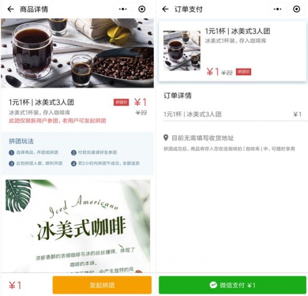 連咖啡推出的拼團(tuán)小程序“連咖啡”,在沒有進(jìn)行外部推廣的情況下,上線3小時內(nèi),有近10萬人成功完成拼團(tuán)。小程序還為連咖啡的服務(wù)號引流近20萬消費用戶,其中超過三分之二是拼團(tuán)成功后關(guān)注的。