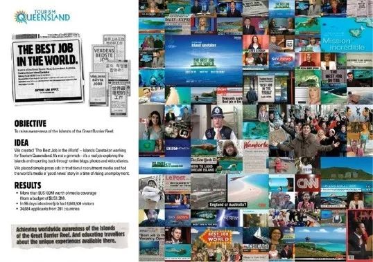 但就是這一件事,就讓全世界的人都知道了昆士蘭,幫助昆士蘭旅游局帶來了4.8億元公關價值的巨大效益,而他們的活動總經(jīng)費不過區(qū)區(qū)170萬澳元(約合735萬元人民幣,其中包括護島人15萬澳元的薪水)。