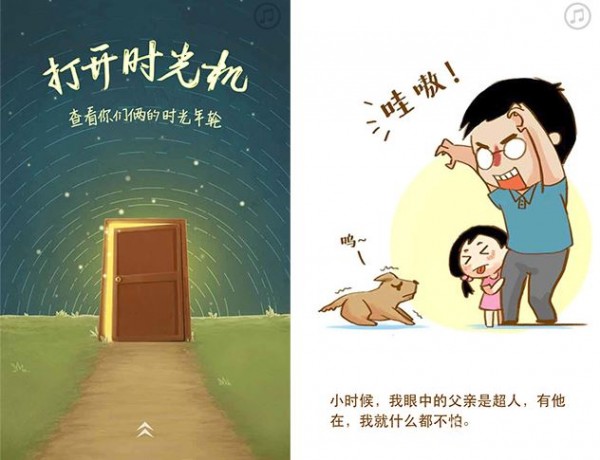 同樣場景化設(shè)計,選取小時候的糗事或長大看來略搞笑的事,一般采用用戶交互較多的測試類或答題類,參與過后讓人感覺仿佛看到當年的自己。憶往昔年少不懂父愛,只可惜時光不會回轉(zhuǎn),空余感慨,笑中還有淚。