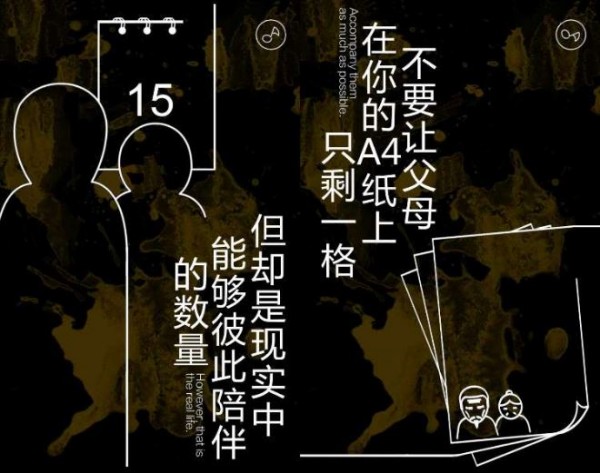 年輕人為主角,對目標受眾來講更像講現(xiàn)在的自己,突出年輕人難以兼顧父母家庭的生活困境。讓用戶看到自己的影子,引起生活的共鳴也引起對父母的忽視和愧疚,催淚效果杠杠的。
