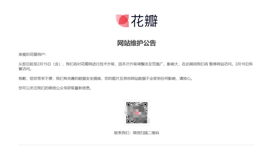 花瓣網(wǎng)維護不要緊,但是你好歹提前預(yù)警一下,招呼不打就自閉了,你讓我導(dǎo)出自己的素材也好啊!