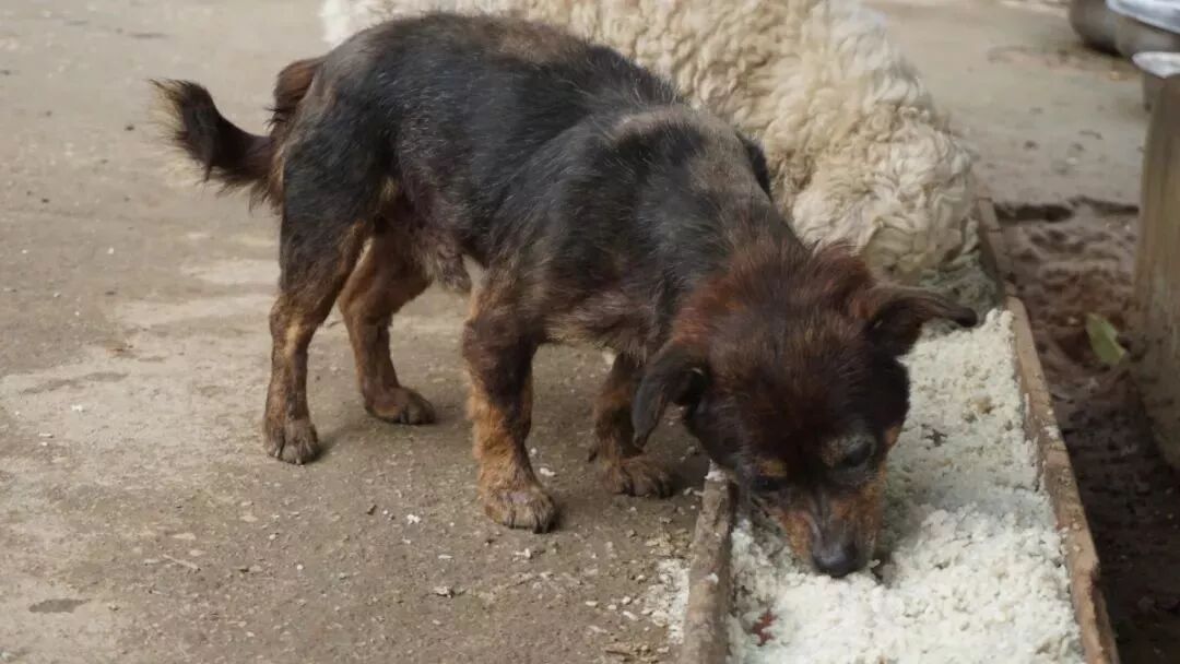 看到一只流浪狗戰(zhàn)戰(zhàn)兢兢的縮在角落