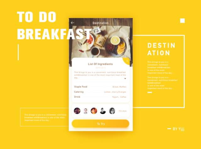step1:準(zhǔn)備一個(gè)你喜歡的元素做主題,模特、手機(jī)、app頁(yè)面等等,這里我拿一個(gè)我追波做的頁(yè)面來(lái)做例子,先準(zhǔn)備了一張app頁(yè)面。背景要來(lái)一個(gè)純色的,那我就先來(lái)一個(gè)黃一點(diǎn)的,大家可以先用白色做底色。
