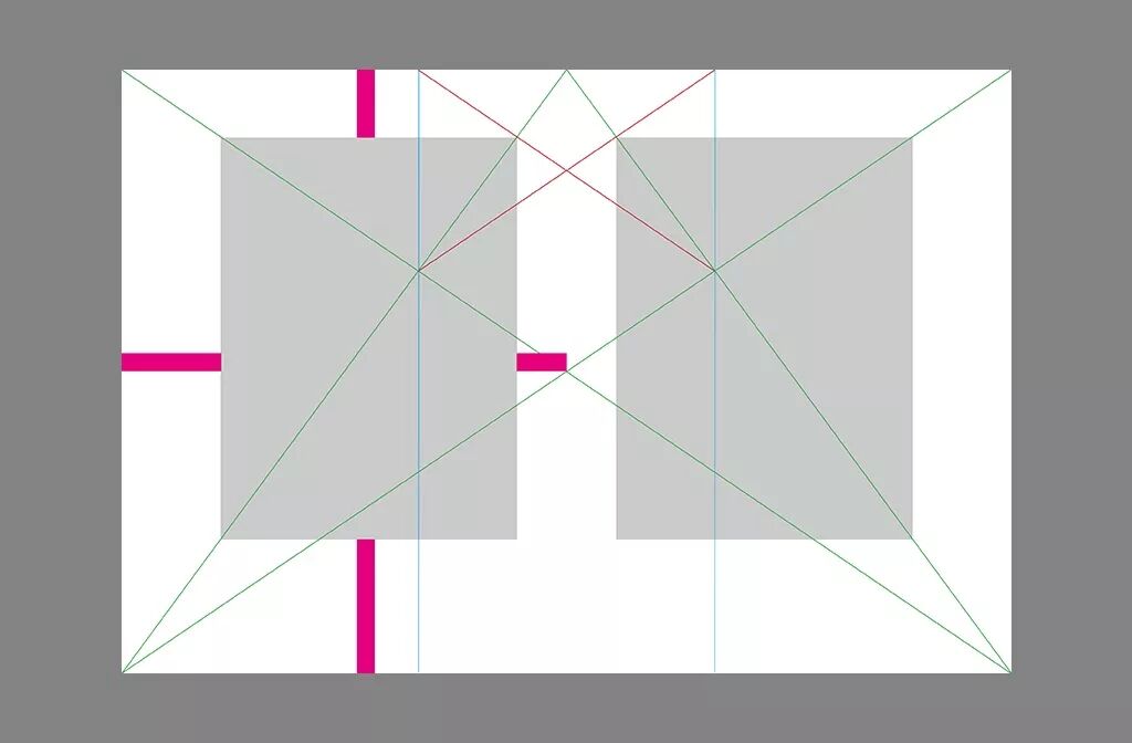 另外還能通過維拉爾系統(tǒng)繪制出六等分/九等分/十二等分(6×6,9×9和12×12)在內(nèi)的各種網(wǎng)格系統(tǒng),網(wǎng)格中的每一個小單元網(wǎng)格都和版心區(qū)域為等比例關(guān)系的,所以它們相互之間都顯得格外協(xié)調(diào)。這可以讓設(shè)計師在排版時不用猜測摸索,仍然能做出賞心悅目的作品。(如下圖)