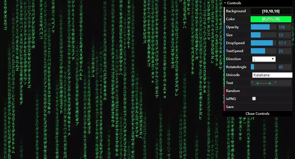 在頁面上,你可以隨時調(diào)整故障字體、顏色、速度、方向等等參數(shù),馬上就可以得到自己想要的效果。