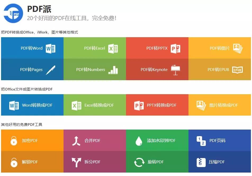 PDF派是一個位用戶提供簡單好用并且完全免費的在線PDF處理工具。