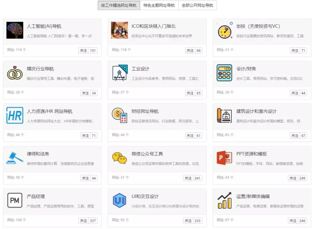 導航灣是一個網(wǎng)址導航分享社區(qū),主要是基于職業(yè),興趣,工作進行網(wǎng)站模塊化的整合,網(wǎng)站數(shù)量非常多。特別是還匯聚了很多互聯(lián)網(wǎng)人日常所需的實用工具及網(wǎng)站。