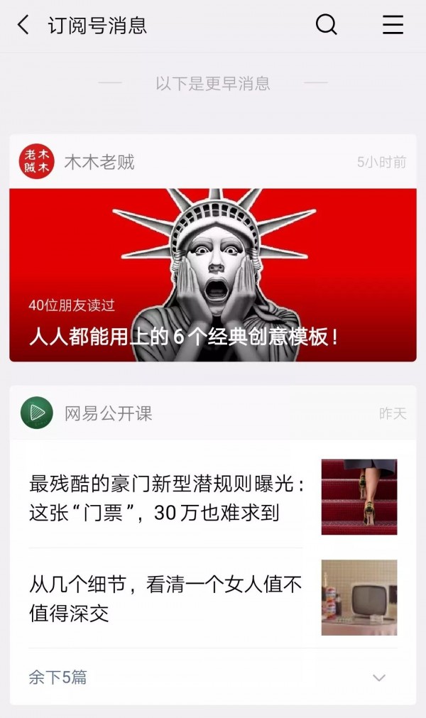 大家知道,在微信訂閱號(hào)內(nèi)容展現(xiàn)形式多次改版后,從去年開始,大多數(shù)用戶的圖文消息已經(jīng)是按照類信息流形式直接展現(xiàn)。