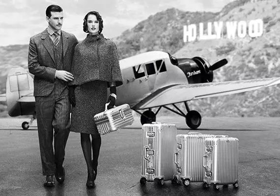 比如rimowa的旅行箱。在很早期的海報(bào)中他們就用了這樣的畫面:背景是好萊塢,一架螺旋槳飛機(jī),前面走著一對(duì)看上去很“高級(jí)”的男女,給人以強(qiáng)烈的暗示。這種品牌策略是永遠(yuǎn)不會(huì)過時(shí)的。