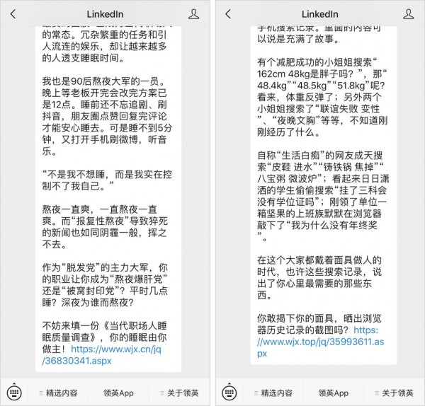而在前文中提到的,調(diào)查用戶喜歡閱讀什么文章,可以采取其他的形式。比如像領(lǐng)英那樣以文字作為調(diào)查入口,或者用獎(jiǎng)金等無差異的福利吸引用戶進(jìn)來投票。